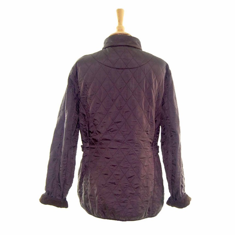 Features diamond quilting and a storm collar with brown fleece lining